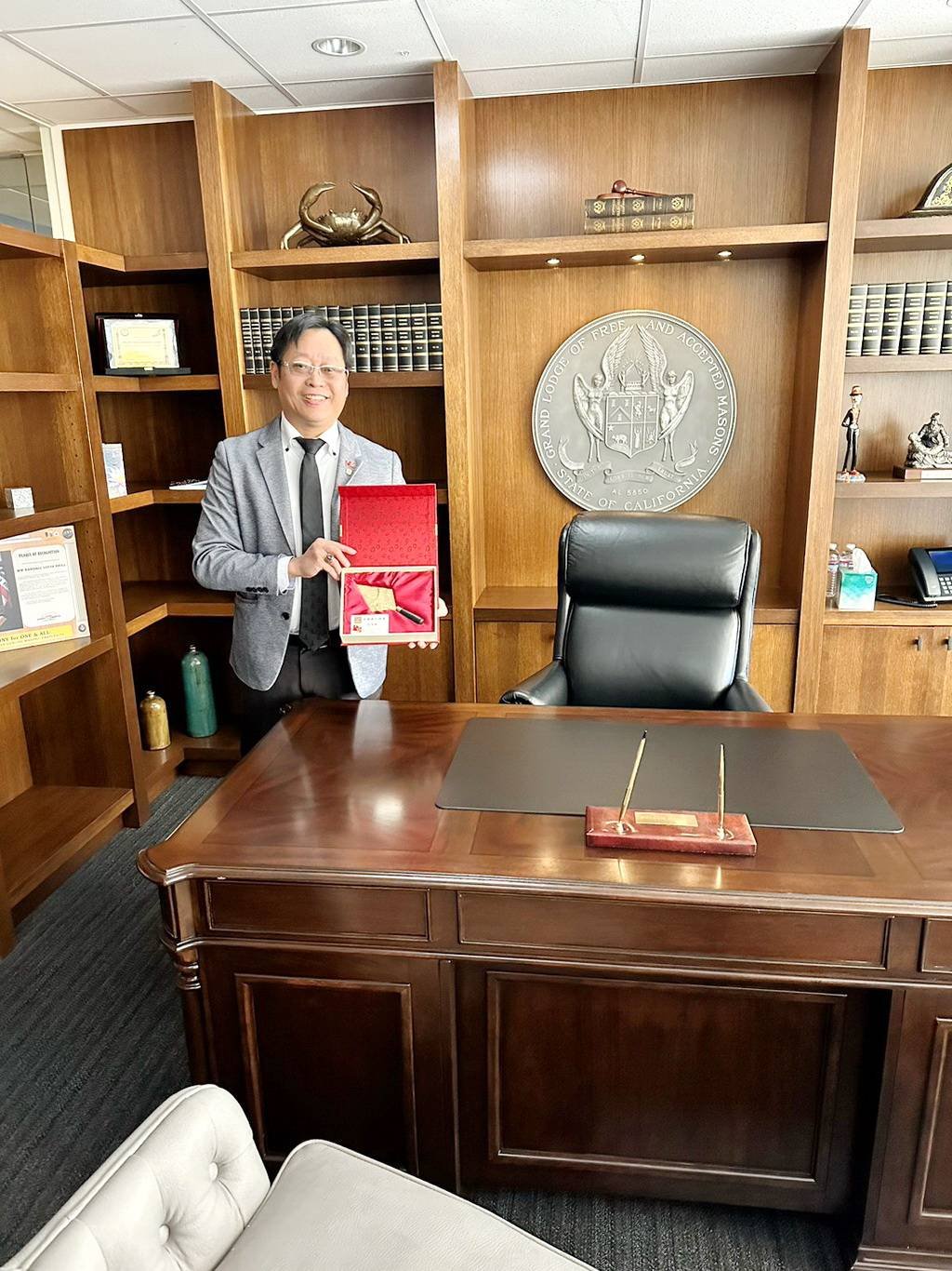 On behalf of the Grand Master of the Grand Lodge of China, JGS W.B. Paulo Wu visited and presented to the Grand Lodge of California and the Grand Lodge of Georgia on October 10th, 2022.